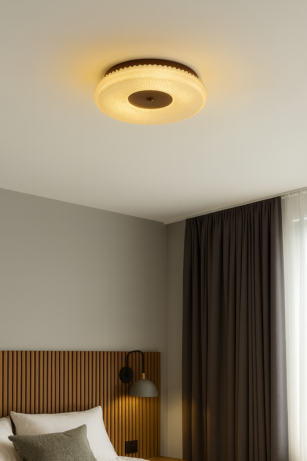 עמוד הבית תאורה צמוד תקרה אגוז 60CM מחליף צבע דרך כפתור